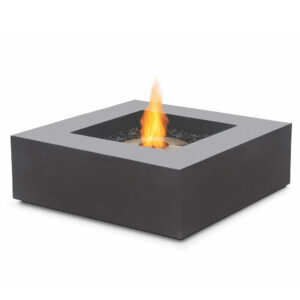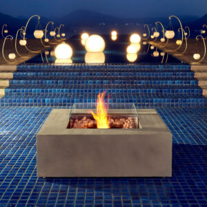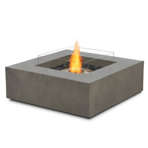 Includes durable polished composite concrete surround, EcoSmart’s 304-grade stainless steel burners, and black glass charcoal as decorative media.