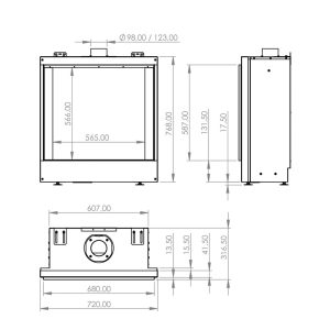 The conventional flue system ensures safe, efficient heating with natural gas or propane. The standard black steel finish can be upgraded to black reflective panels for a refined, high-end look.