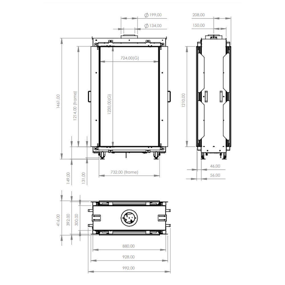 In natural gas, the fireplace runs at an outstanding 89% efficiency. The standard black steel finish complements any décor, with black reflective panels available as an upgrade for extra depth and visual impact.