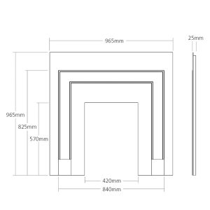 Overall Sizes: 965mm (wide) x 965mm (high) x 25mm (thick)