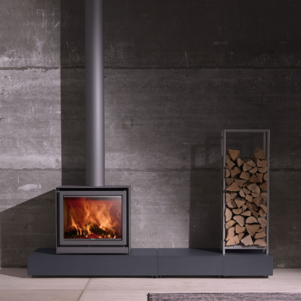 The clean lines of this family of wood stoves emphasise the dancing flames. The advanced combustion engine guarantees a very attractive output.